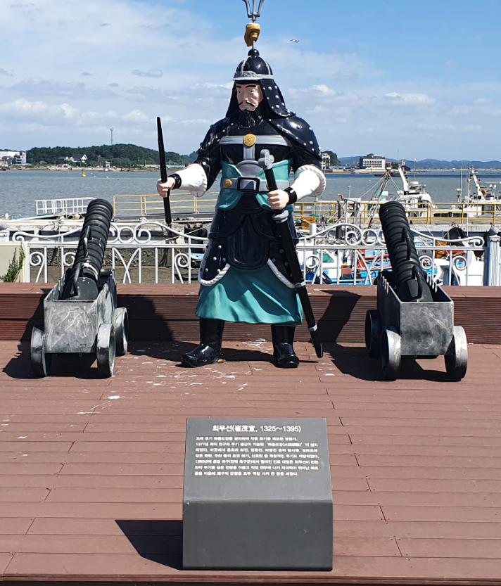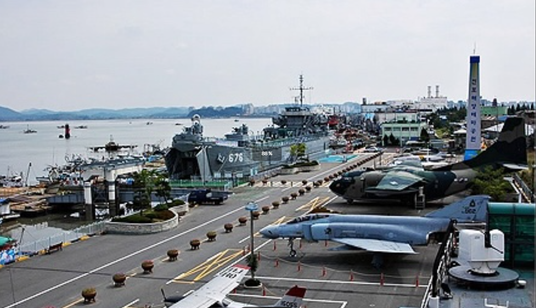 일곱 번째로 소개해 드릴 곳은 진포해양테마공원입니다. 이곳은 고려말기 최무선 장군이 화포를 만들어 왜구를 물리쳤던 진포대첩을 기념하기 위해 조성된 공원이에요. 탱크, 전투기 등 육해공군의 군사 기기들을 전시해 두어 군사 마니아들에게는 특히 인기 있는 장소랍니다.
