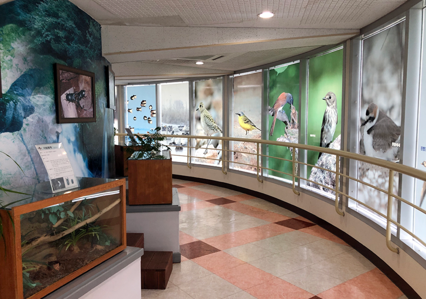 야외 체험관에는 독수리와 수리부엉이를 볼 수 있는 맹금사장, 열대 식물과 미어캣, 앵무새 등을 만날 수 있는 온나나 체험장, 물의 소중함을 알 수 있는 물체험관, 해양 쓰레기의 심각성을 보여주는 해양 체험관 등으로 구성되어 있어 아이들의 환경 교육에 효과적인 곳이랍니다.