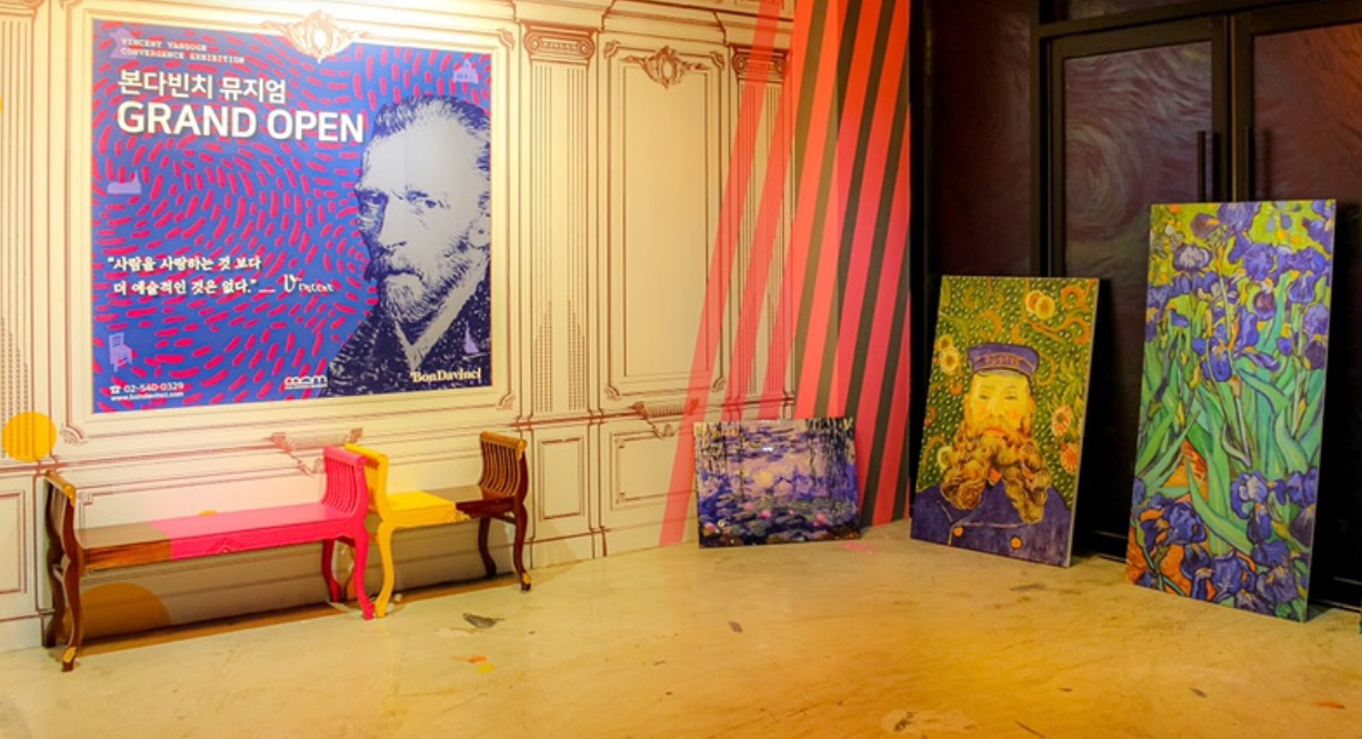 아홉 번째로 소개해 드릴 곳은 본다빈치뮤지엄 군산입니다. 이곳은 반 고흐가 꿈꾸었던 예술인들의 마을을 주제로, 당시대 인상주의 화가들의 빛의 미학과 삶을 컨버전스 아트로 재해석한 특별한 공간이에요.