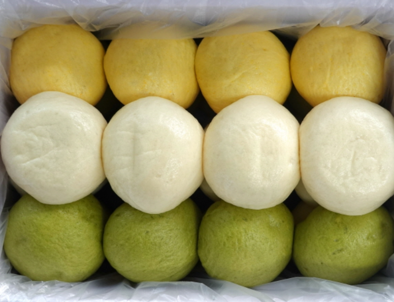 황기는 우리가 흔히 먹는 팥이 들어있는 기본 찐빵인데 역시 클래식이 진리입니다. 녹차에는 녹차 앙금이, 호박에는 달콤한 단호박 앙금이 들어있어요.
